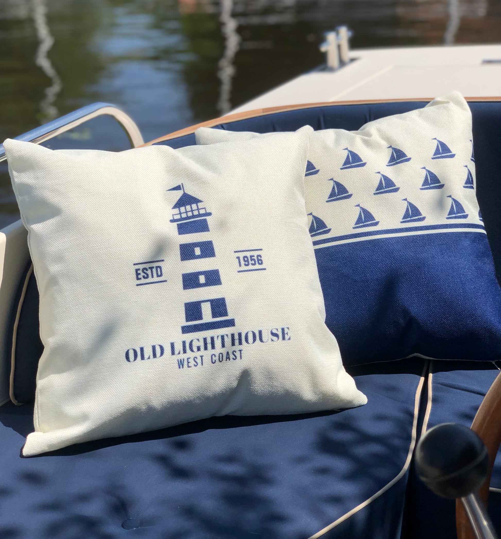 Bootkussen - Blauwe vuurtoren - 45x45 - royal blauw